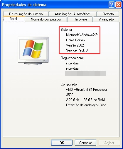 Na nova janela vá até a guia “Geral” e lá verifique na seção “Sistema” se há a indicação de que a versão é de 64 bits. Se não constar nada além das versões do XP (Home Edition Service Pack 3, por exemplo), o que você usa é um Windows XP de 32 bits.