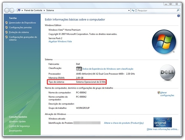 Na janela que se abre são encontradas várias informações. Na seção “Sistema”, porém, está a que vocêprocura. Na opção “Tipo de sistema” é possível verificar se o seu é de 32 ou 64 bits: